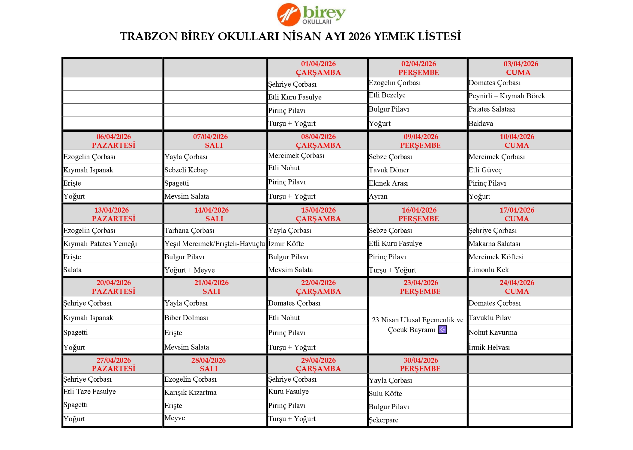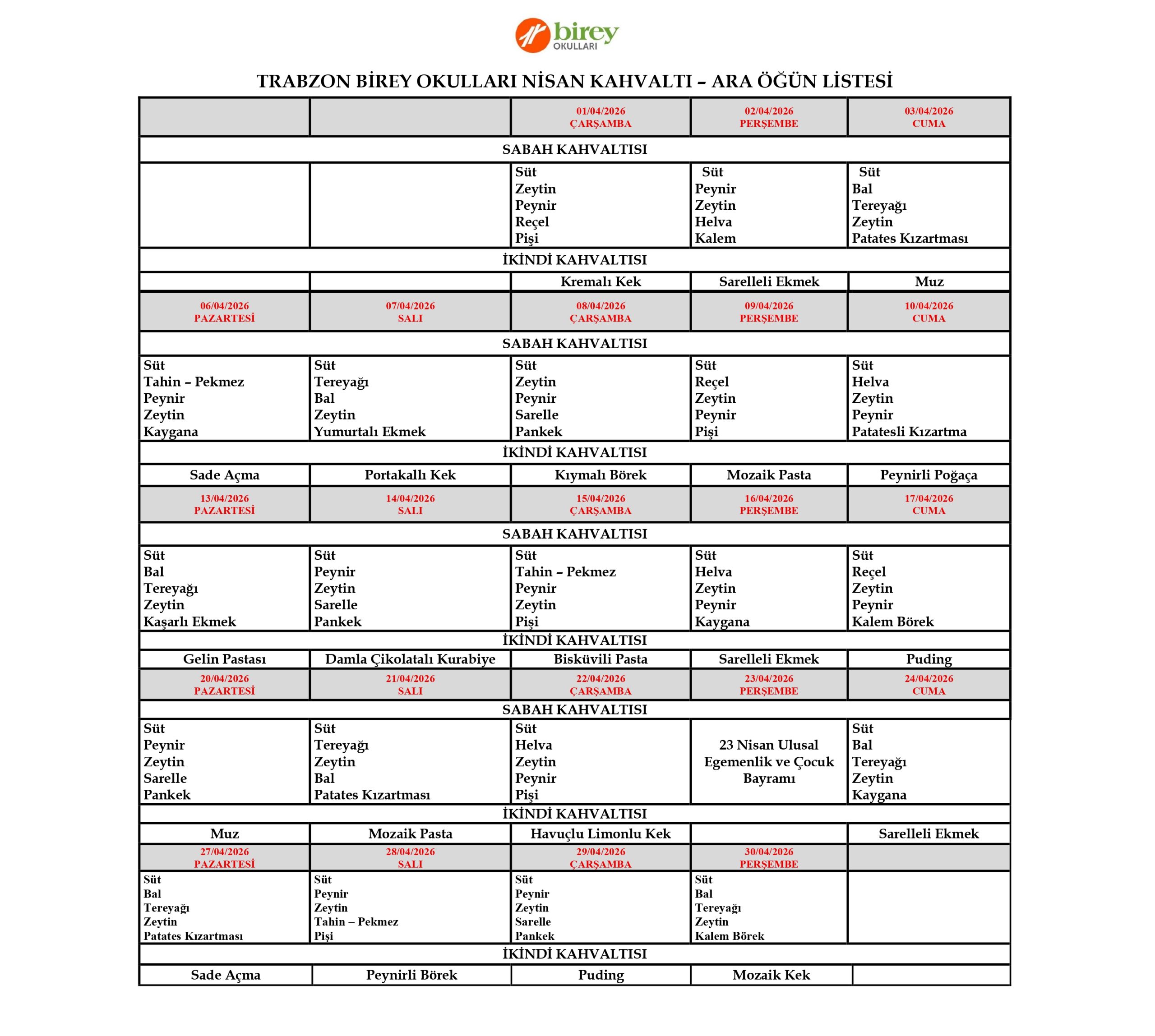 Kalitesiz gıdalar hastalıkların en başta gelen sebeplerindendir. Bu nedenle Birey Okulları’nda beslenme kalitesi önemli bir yer tutmaktadır. Çocuklarımızın günlük olarak almaları gereken kalori miktarı diyetisyenlerin gözetiminde hesaplanır ve bu doğrultuda çocuklarımızın beslenmelerine dikkat edilir. Yemekhanelerimizin temizliği ve gıdaların kalitesi kurumlarımızda titizlikle dikkat edilen hususlardandır.